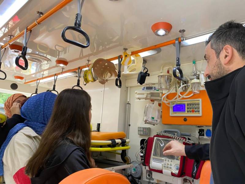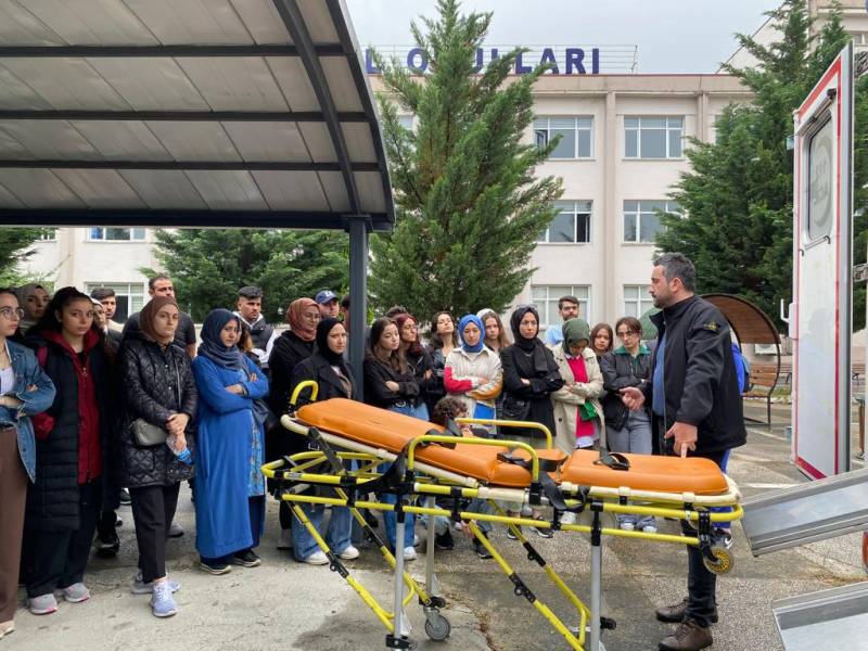 Sakarya Üniversitesi Sağlık Hizmetleri Meslek Yüksekokulu, Tıbbi Hizmetler ve Teknikleri Bölümü, İlk ve Acil Yardım Programı 1. sınıf öğrencileri Uzm. Hemşire Naime TAYMAZ (Eğitmen) ve Sakarya İl Sağlık Müdürlüğü katkılarıyla " Ambulans Servis Eğitimi III" dersi kapsamında ambulans ekipman kullanımı eğitimi uygulamasını tamamladı.
