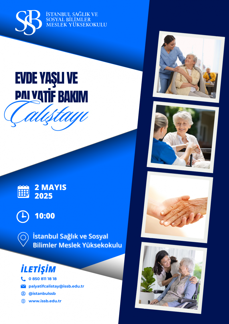 İstanbul Sağlık ve Sosyal Bilimler Meslek Yüksekokulu tarafından 9 Nisan - 3 Mayıs Palyatif Bakım Farkındalık Haftası kapsamında, 2 Mayıs 2025 tarihinde “Evde Yaşlı ve Palyatif Bakım Çalıştayı" düzenlemektedir. Çalıştayımızda, yaşlı bireylerin evde bakım süreçleri ve palyatif bakım hizmetlerinin önemi farklı boyutlarıyla ele alınacak, alanında uzman konuşmacılar ve katılımcılarla bir araya gelerek bilgi ve deneyim paylaşımında bulunma fırsatı yakalanacaktır. Çalıştay çıktıları ile bir sempozyum düzenlenecektir.