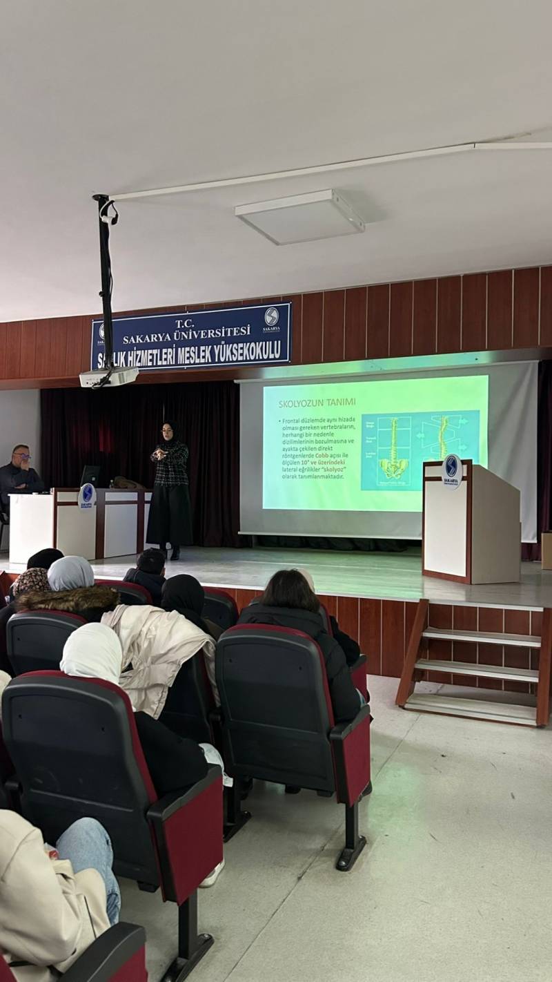 17 Aralık 2024 tarihinde, yüksekokulumuzun Konferans Salonu'nda, fizyoterapist Aleyna Karakuş tarafından "Skolyoz ve Duruş Bozuklukları" konulu bir seminer düzenlendi.