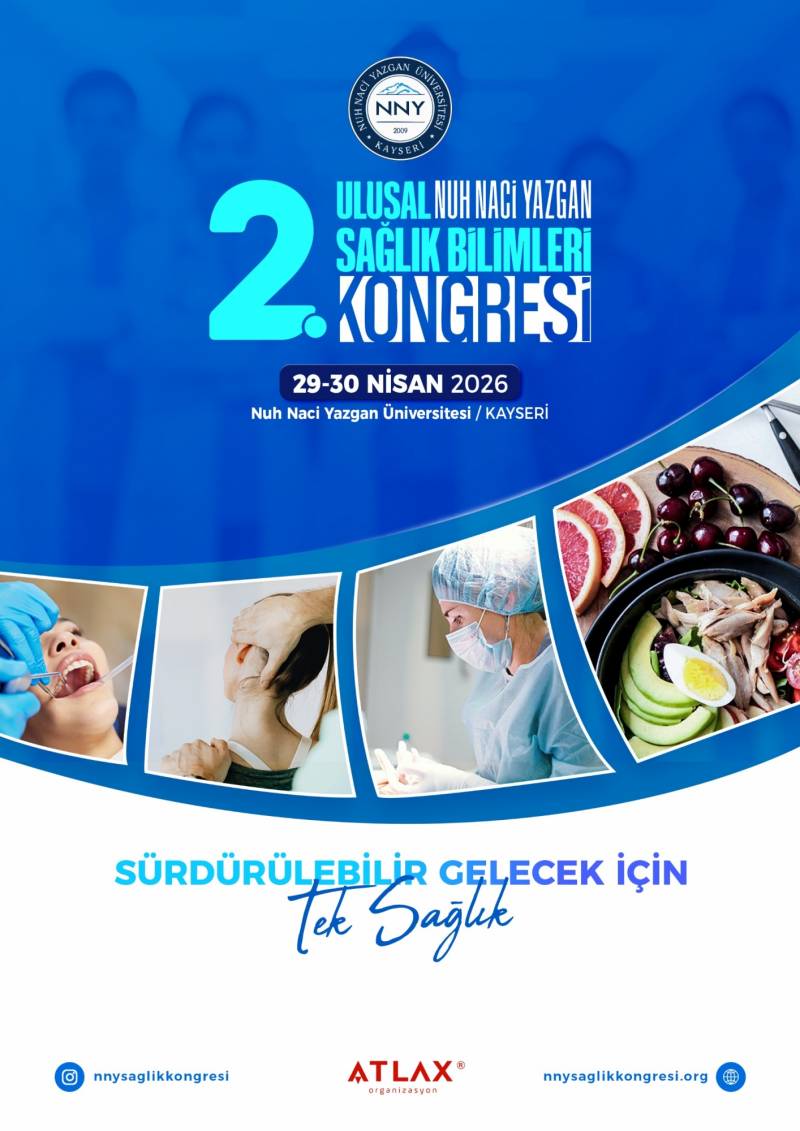 NUH NACİ YAZGAN ÜNİVERSİTESİ REKTÖRLÜĞÜ Sağlık Bilimleri Fakültesi ve Diş Hekimliği Fakültesi'nin iş birliği ile 29-30 Nisan 2026 tarihlerinde "2. Ulusal Nuh Naci Yazgan Sağlık Bilimleri Kongresi" "Sürdürülebilir Gelecek İçin Tek Sağlık" temasıyla düzenlenecektir. Sağlık alanında çalışan akademisyenler, araştırmacılar, öğrenciler ve profesyoneller başta olmak üzere disiplinler arası bilimsel katkıları teşvik etmeyi amaçlayan Kongremizin programında paneller, konferanslar, sözlü ve poster bildiri sunumları yer alacaktır. 2. Ulusal Nuh Naci Yazgan Sağlık Bilimleri Kongresi hem yüz yüze hem de online olarak gerçekleşecek olup,http://https://www.nnysaglikkongresi.org adresinden kongre katılımı için başvuru yapabilirsiniz.