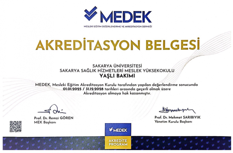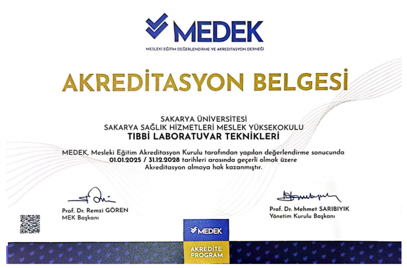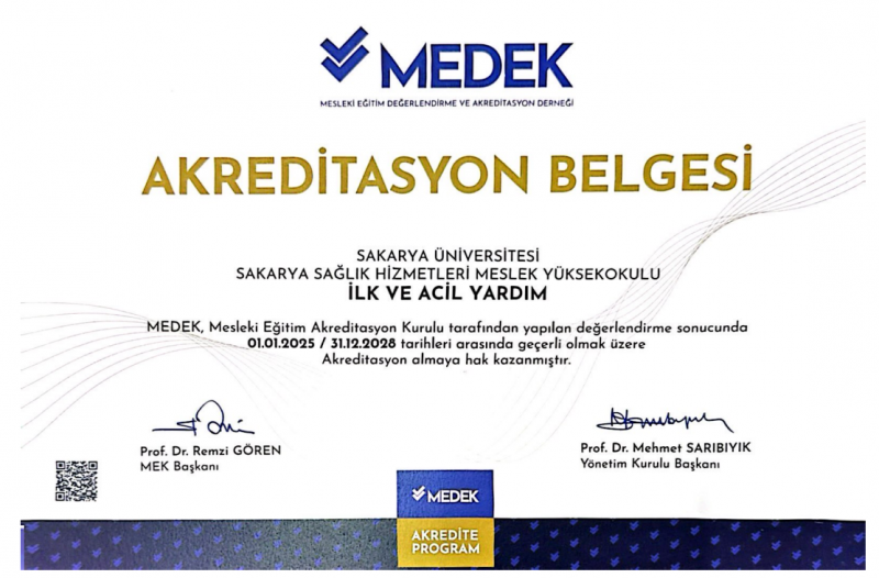 Mesleki Eğitim Değerlendirme ve Akreditasyon Derneği (MEDEK)'nden alınan akreditasyon sertifikaları ekte yer almaktadır.